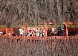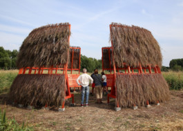 Inspiré des construction vernaculaires paysannes faîtes de bois et de bruyère, notre installation accueille des récits fictions créés pour l’occasion par les habitants du territoire autour des prairies du Roy.