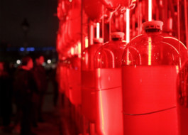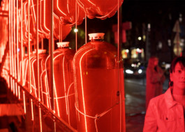 Matériaux | 300 fûts de bières, échafaudage, eau du canal de l'Ourcq, LED.